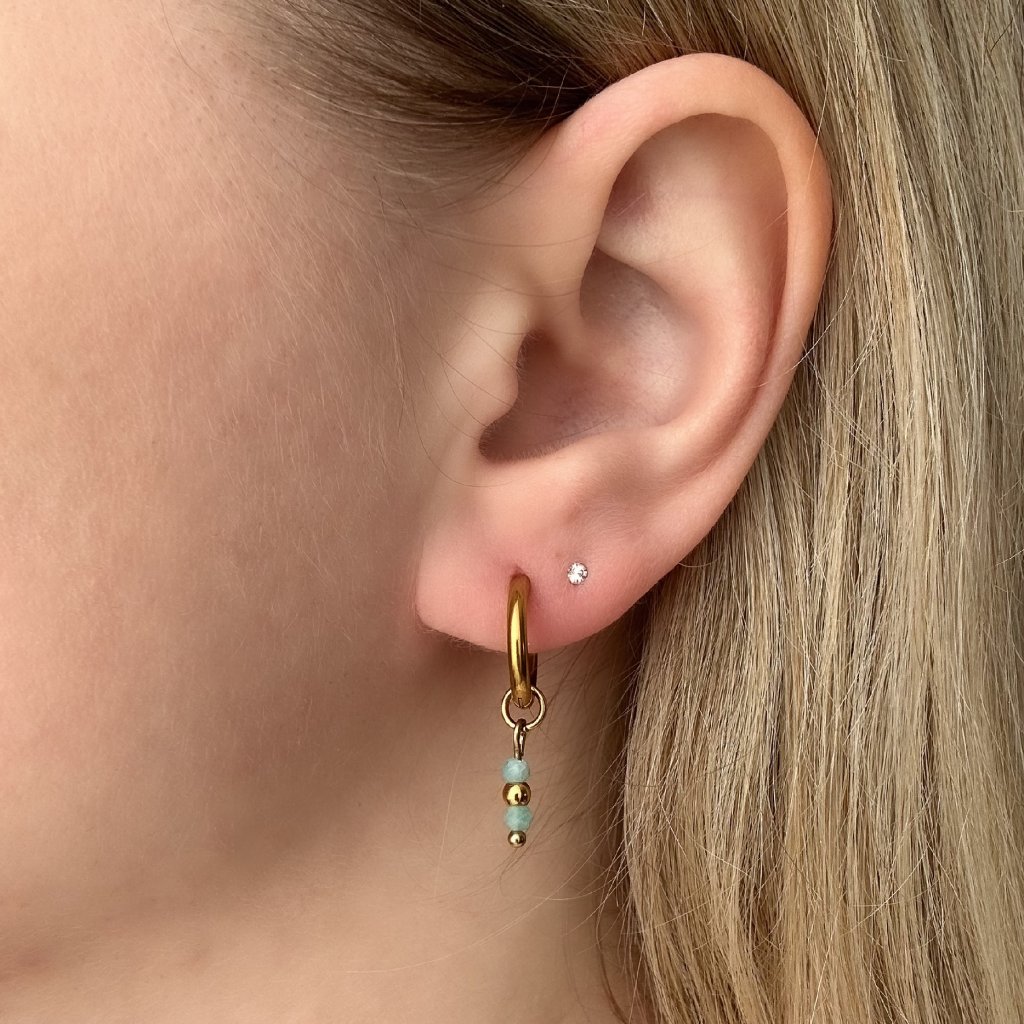 Kruhové náušnice s amazonitem. Amazonit je mimořádně uklidňující kámen. Podporuje vitalitu a pomáhá zklidnit tělo i mysl. Kruhová náušnice je z odolné a hypoalergenní chirurgické oceli. Tyto modré náušnice s přírodním amazonitem jsou voděodolné. Máte na výběr ze tří různých velikostí náušnicových kroužků. Možnost zakoupit ve výhodném setu s náhrdelníkem a náramkem.