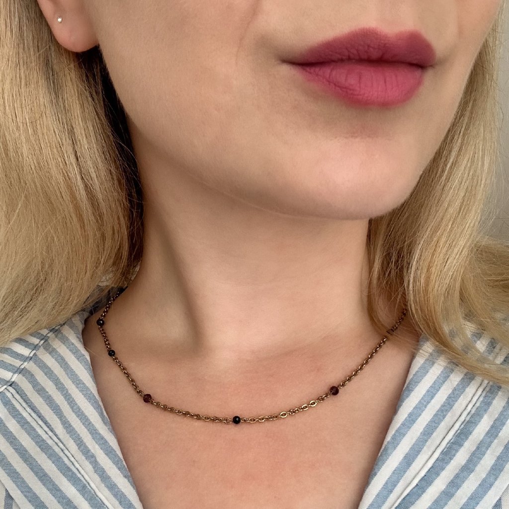 Náhrdelník s granátem a černým spinelem je ručně vytvořen s péčí o každý detail. Jeho design zachycuje harmonii kontrastů – vášeň granátu a klid spinelu, zemi a nebe, den a noc. Tento náhrdelník s přírodním granátem a spinelem není jen doplňkem, ale příběhem, který vás bude inspirovat každý den. Merano je talisman pro ženy, které se nebojí žít s vášní, objevovat své sny a nechat svou vnitřní sílu zazářit.