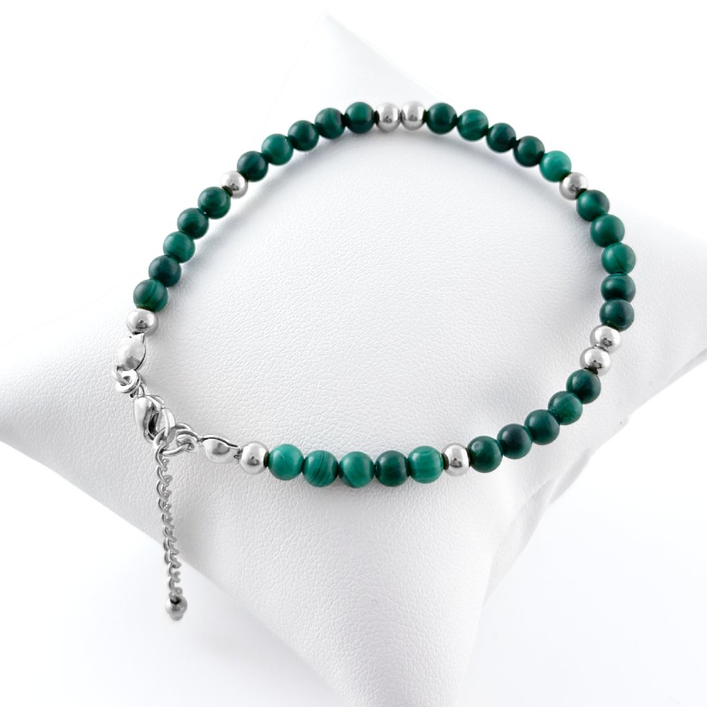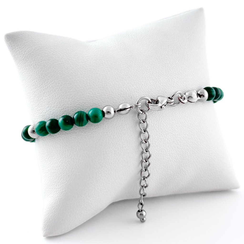 Malachit je známý tím, že pohlcuje negativní energii, posiluje sebevědomí a pomáhá zvládat změny. Jeho jedinečná kresba dělá z každého náramku originál, který podtrhne váš charakter a dodá vám pocit jistoty.