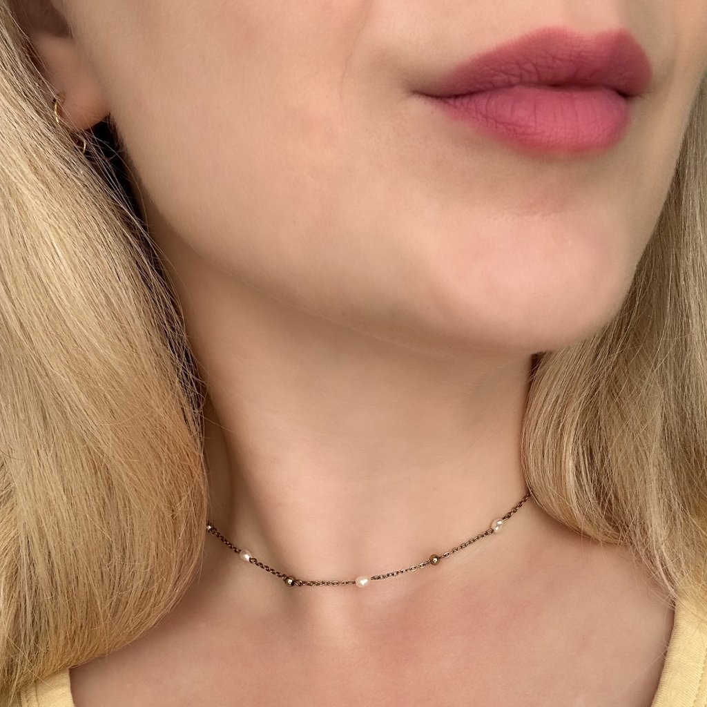Jemný náhrdelník s pravými říčními perlami. Ručně vyrobený náhrdelník je tvořen drobnými říčními perlami, které svou přirozenou nepravidelností a jemným leskem dodávají šperku jedinečný charakter. Každá perla byla pečlivě vybrána s důrazem na detail a harmonii.