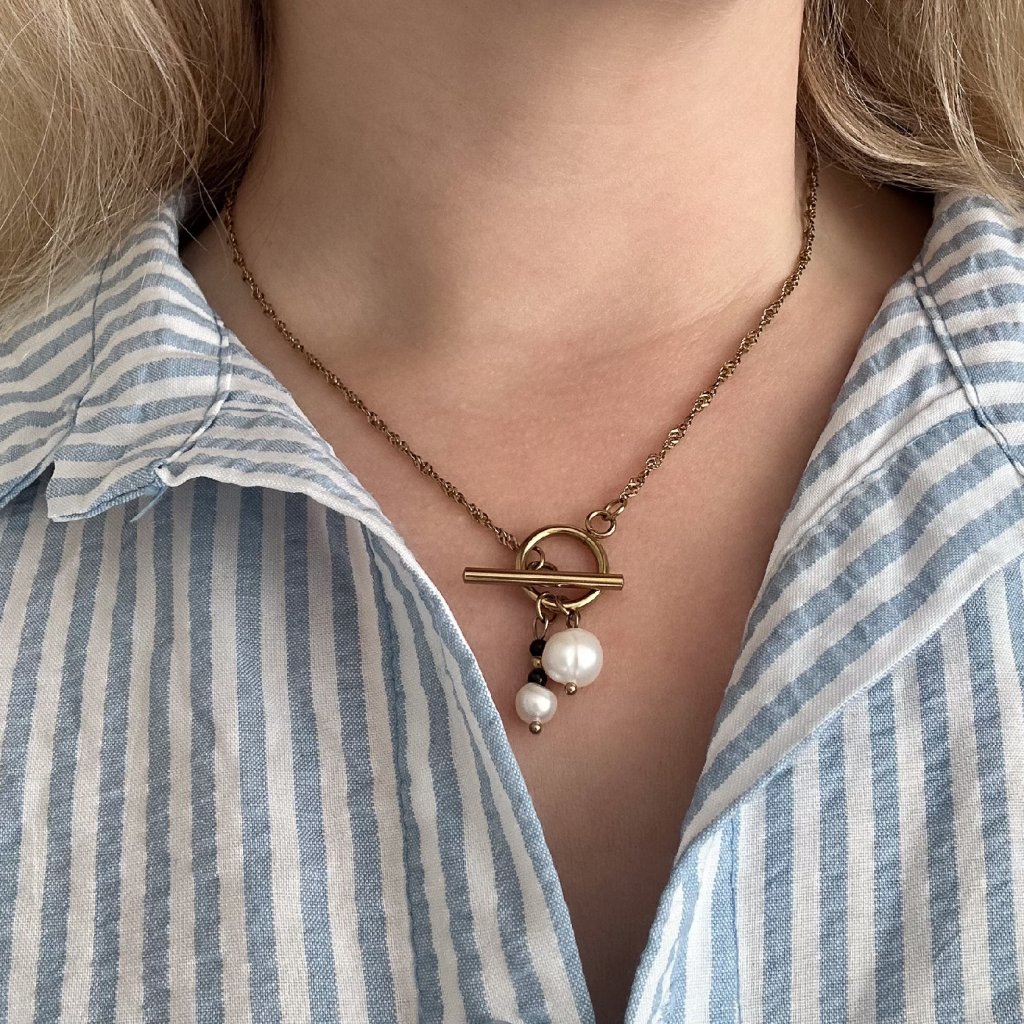 Řetízek s říčními perlami. S náhrdelníkem Pisa rozhodně zaujmete! Tento elegantní kroucený řetízek je vyroben z chirurgické oceli, která je pozlacena odolnou metodou PVD, zajišťující dlouhotrvající a stálý zlatý odstín. Náhrdelník je zdoben říčními perlami vysoké kvality, které mu dodávají sofistikovaný a nadčasový vzhled. Dominantou tohoto šperku je moderní americké zapínání, které zajišťuje snadné a stylové nošení.