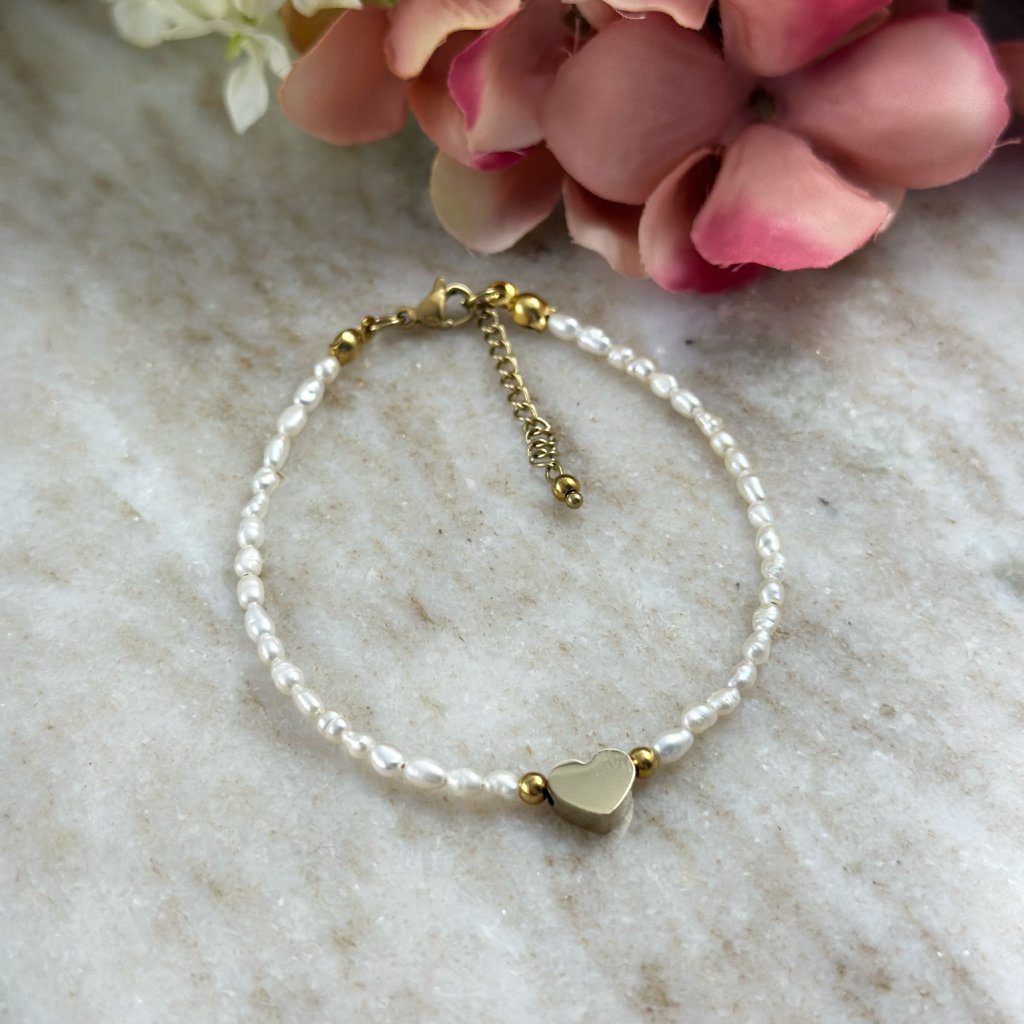 Perlový náramek Hannah. Náramek je vyroben z pravých sladkovodních rýžových perel a doplněn o maličké srdíčko z chirurgické oceli. V případě zájmu Vám ráda perlový náramek upravím přesně na míru. Ve stejném provedení lze zakoupit i perlový náhrdelník Hannah. Komponenty jsou vyrobeny z hypoalergenní chirurgické oceli, která je vysoce odolná a šetrná k citlivé pokožce.