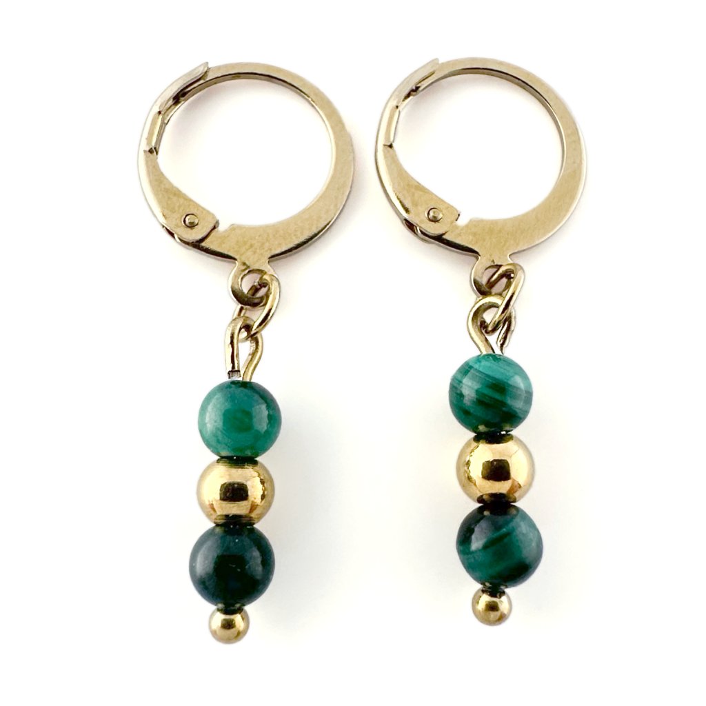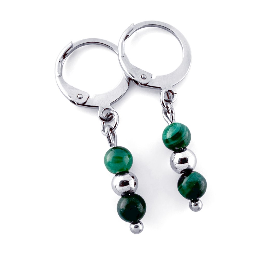 Visací náušnice s malachitem Nemeria. Zahalte se do jemného šepotu přírody s malachitovými náušnicemi Nemeria, které propojují sílu malachitu a ženskou eleganci. Tyto ručně vyráběné náušnice z malachitu vynikají svou smaragdově zelenou kresbou a elegantním pohybem, který podtrhne každý váš krok. Tyto zelené náušnice jsou ideálním doplňkem k náhrdelníku či náramku ze stejné kolekce – nebo jako samostatný šperk pro ženu, která miluje jedinečnost.