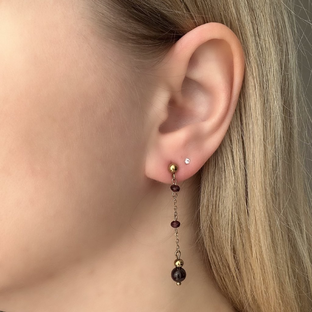 Ručně vyrobené granátové náušnice. Granát je symbolem vášně, síly a lásky, což z těchto náušnic činí nejen módní doplněk, ale i talisman s hlubším významem. Díky pečlivému zpracování jsou náušnice pohodlné na nošení a zaručují dlouhou životnost. Dopřejte si dotek luxusu a nechte se okouzlit těmito jedinečnými náušnicemi, které podtrhnou vaši ženskost. Tyto červené náušnice skvěle doplní váš outfit například i na ples, svatbu či jinou společenskou událost.